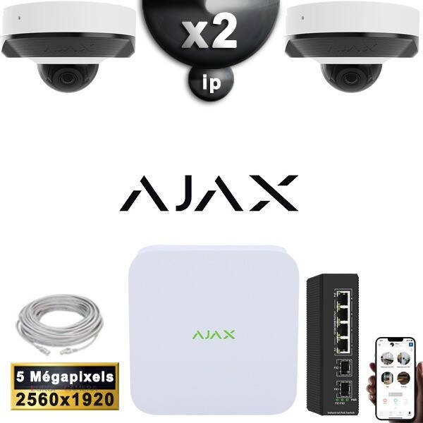 Kit Vidéo Surveillance PRO IP AJAX : 2x Caméras POE Dômes IR 35M 5 MP + Enregistreur NVR 8 canaux H265+ 1000 Go